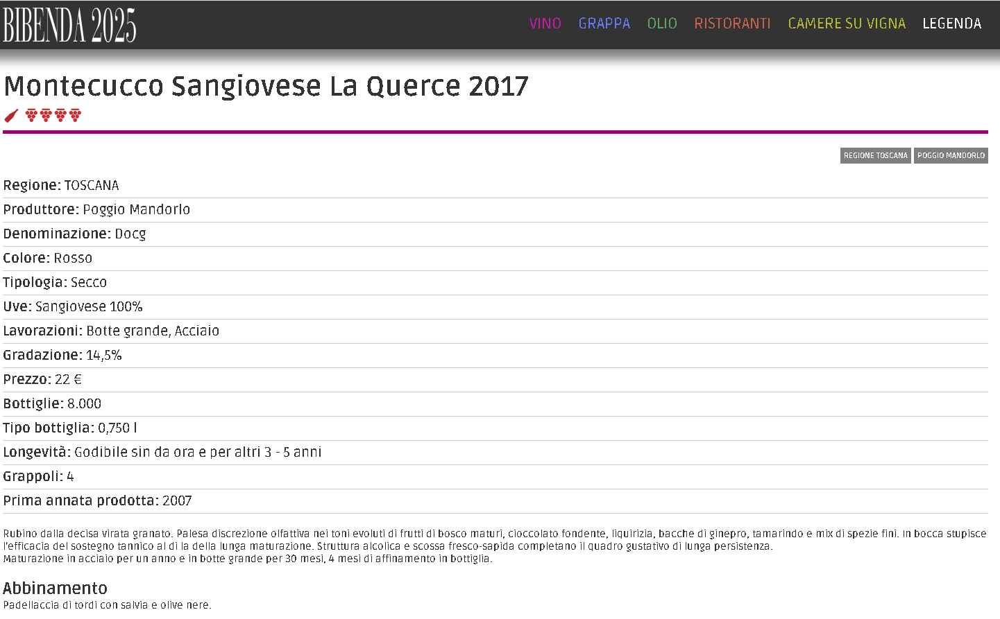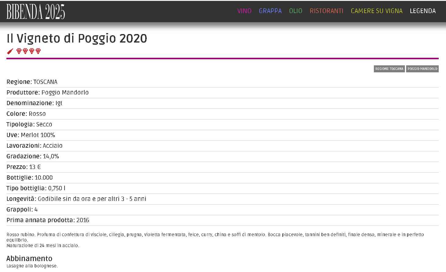 La prestigiosa guida ai Grandi Vini d’Italia ha riconosciuto 4 grappoli a: Il Poggio Mandorlo 2016 (scheda degustativa) Il Vigneto di Poggio 2020 (scheda degustativa) Le Ombre 2016 (scheda degustativa) La Querce 2017 (scheda degustativa) Rosa di Poggio 2023 (scheda degustativa)
